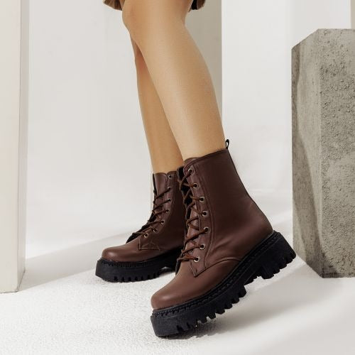 Ankle Boot Leather Mid Heels With Rope E-95