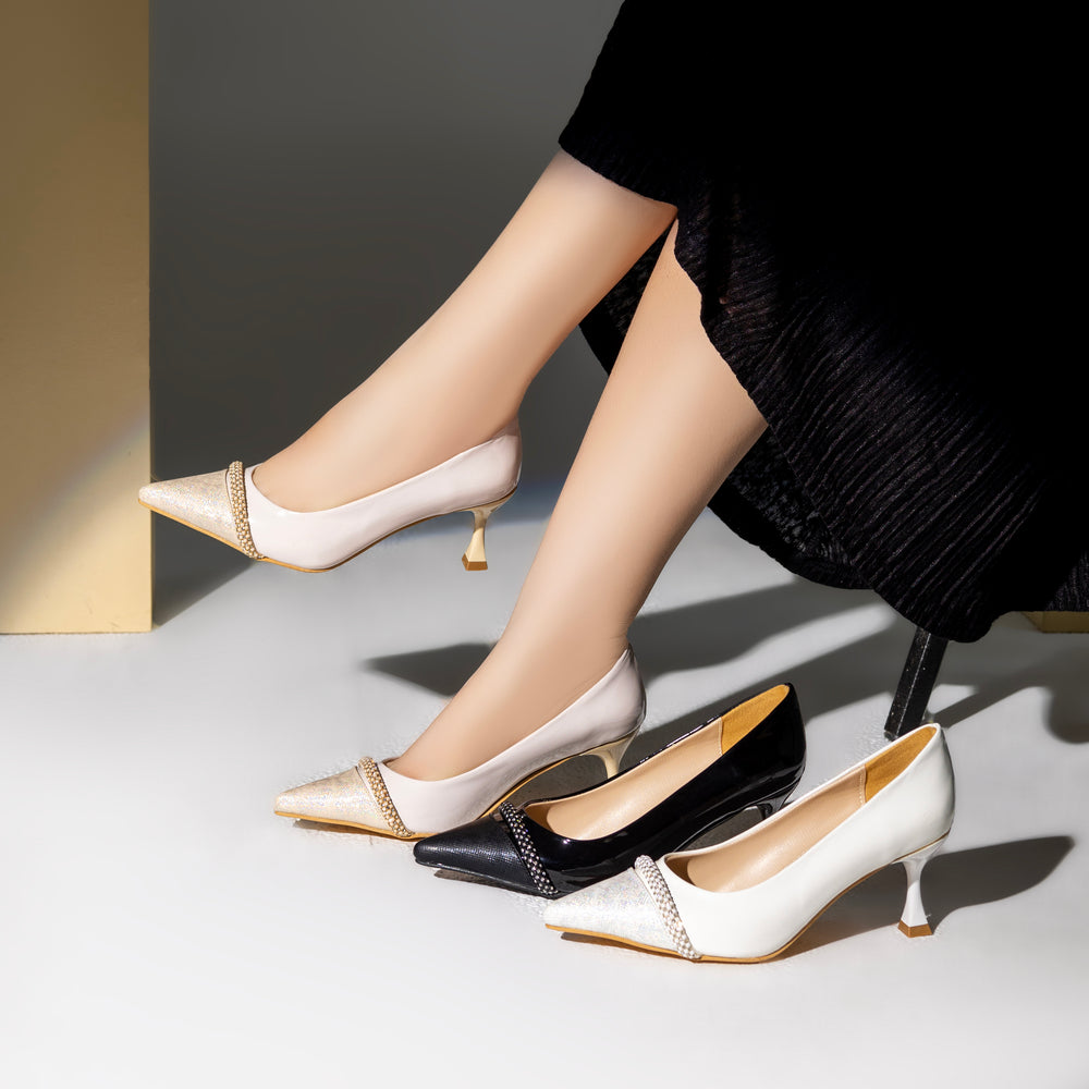 shoe heeled Leather with shiny strap GZ-10