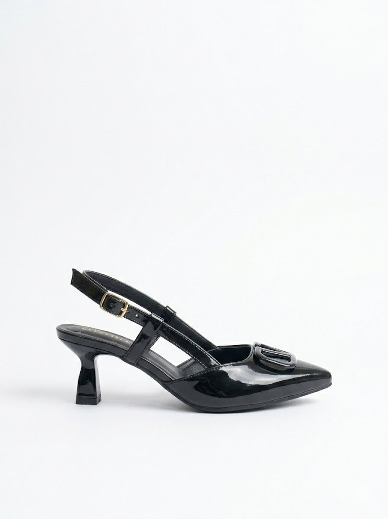 Shoes Mid Heels Leather With Buckle Elegant F-613